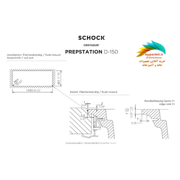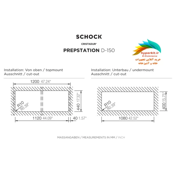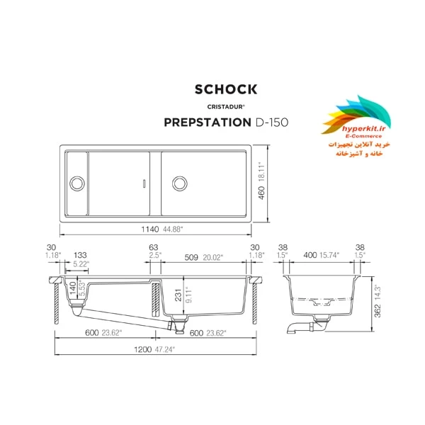 | Schock Cristadur Prepstation Magma D150 ☂ بهداشتی و آنتی باکتریال ☂ در برابر ضربه مقاوم است ☂ دارای 80 درصد کوارتز ☂ UV مقاوم در برابر اشعه ☂ به همراه سبد میوه شور و تخته چوبی ☂ دارای سیستم اتومات خروجی آب ☂ اثر لک و جرم باقی نمی ماند ☂ مقاوم در برابر حرارت ☂ یونیت کابینت 120 در حالت نصب روکار ☂ سایز: 23/1 * 46 * 114 سانتیمتر ☂ دارای 24 ماه گارانتی ☂ ساخت بزرگترین کمپانی سینک گرانیتی ☂ ابعاد لگن کوچک: 14 * 13/3 * 40 سانتیمتر ☂ Handmade in Germany سینک دست ساز ساخت آلمان ☂ quartz composite sink سینک کامپوزیت کوارتز ☂ | |||||||||