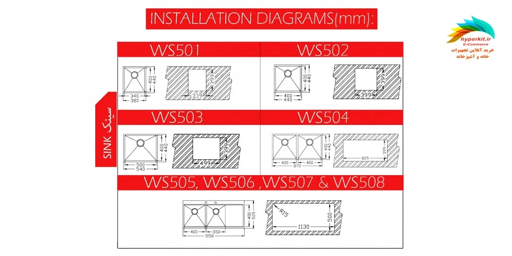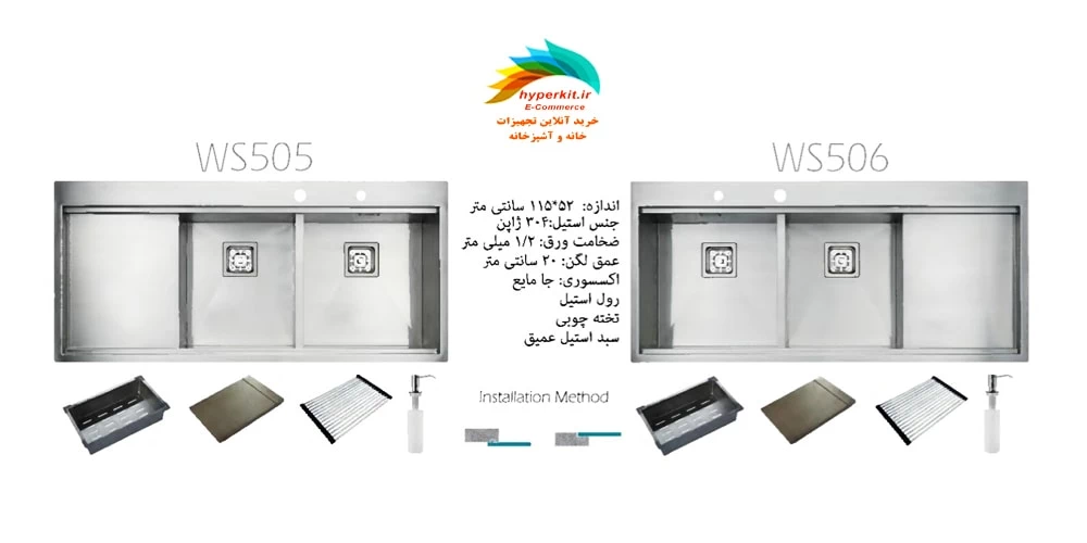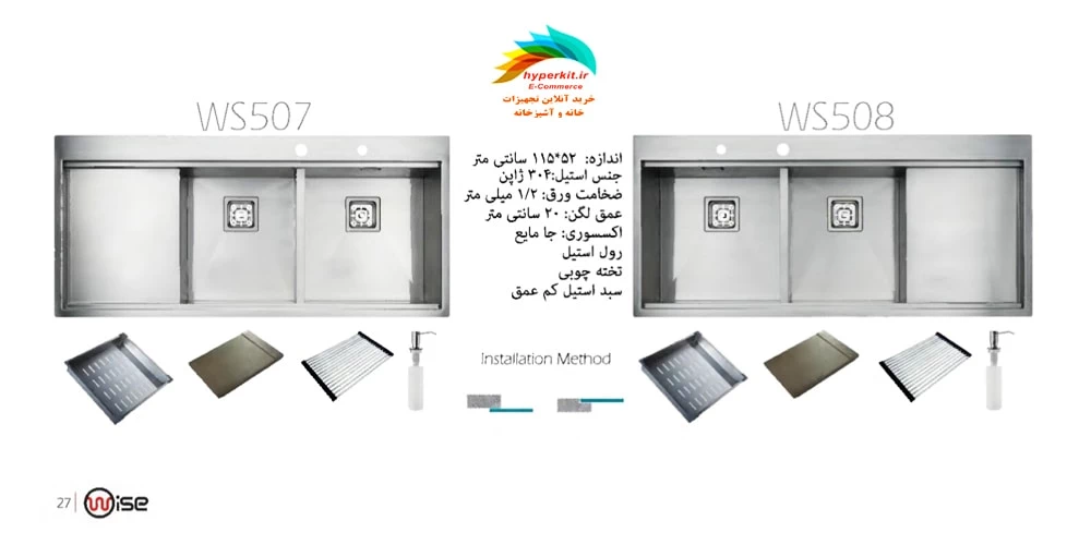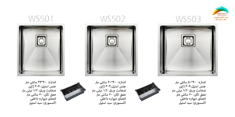 مدلهای سینک وایز دارای ضخامت 1/2 میلیمتر، ورق استیل 304 اصل ژاپن و لوازم جانبی کامل میباشند.