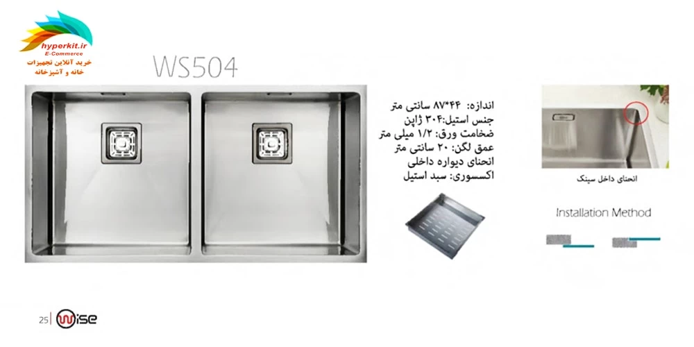 سینک Wise با کیفیت بالا و بصورت دستساز در بستهبندی استاندارد اروپا فولدینگ کارتن قابلیت نصب به صورت توکار، زیرکار و فلشمونت را داراست.