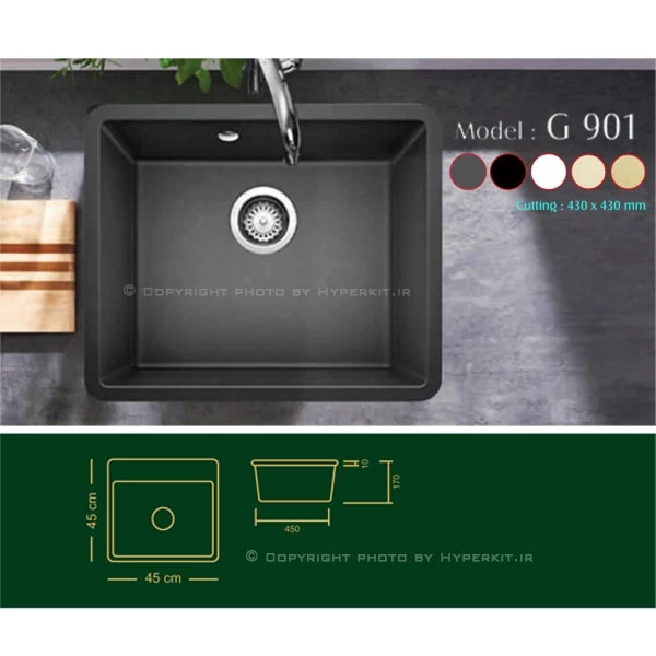 Graniko Granite Sink G901 Black ☂ سینک گرانیتی گرانیکو پلاس بهداشتی و آنتی باکتری ☂ در طرح و رنگ متنوع و ضد لک و جرم ☂ مقاوم در برابر ضربه ظروف ☂ UV مقاوم در برابر اشعه ☂ دارای 60 درصد گرانیت ☂ مقاوم در برابر حرارت ☂ سایز: 17 * 45 * 45 سانتیمتر ☂ ابعاد لگن : 17 * 43 * 43 سانتیمتر ☂ قابلیت نصب به صورت زیر کورین، توکار و روکار ☂ Handmade in Iran سینک دست ساز ساخت ایران ☂ Quartz composite sink سینک کامپوزیت کوارتز ☂ مواد اولیه ساخت ترکیه ☂ مقاوم در برابر مواد شوینده ☂ دارای لوازم سیفون ☂ دارای 24 ماه گارانتی ☂