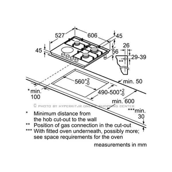 45 x 606 x 527 : ابعاد اجاق (میلیمتر) ☂