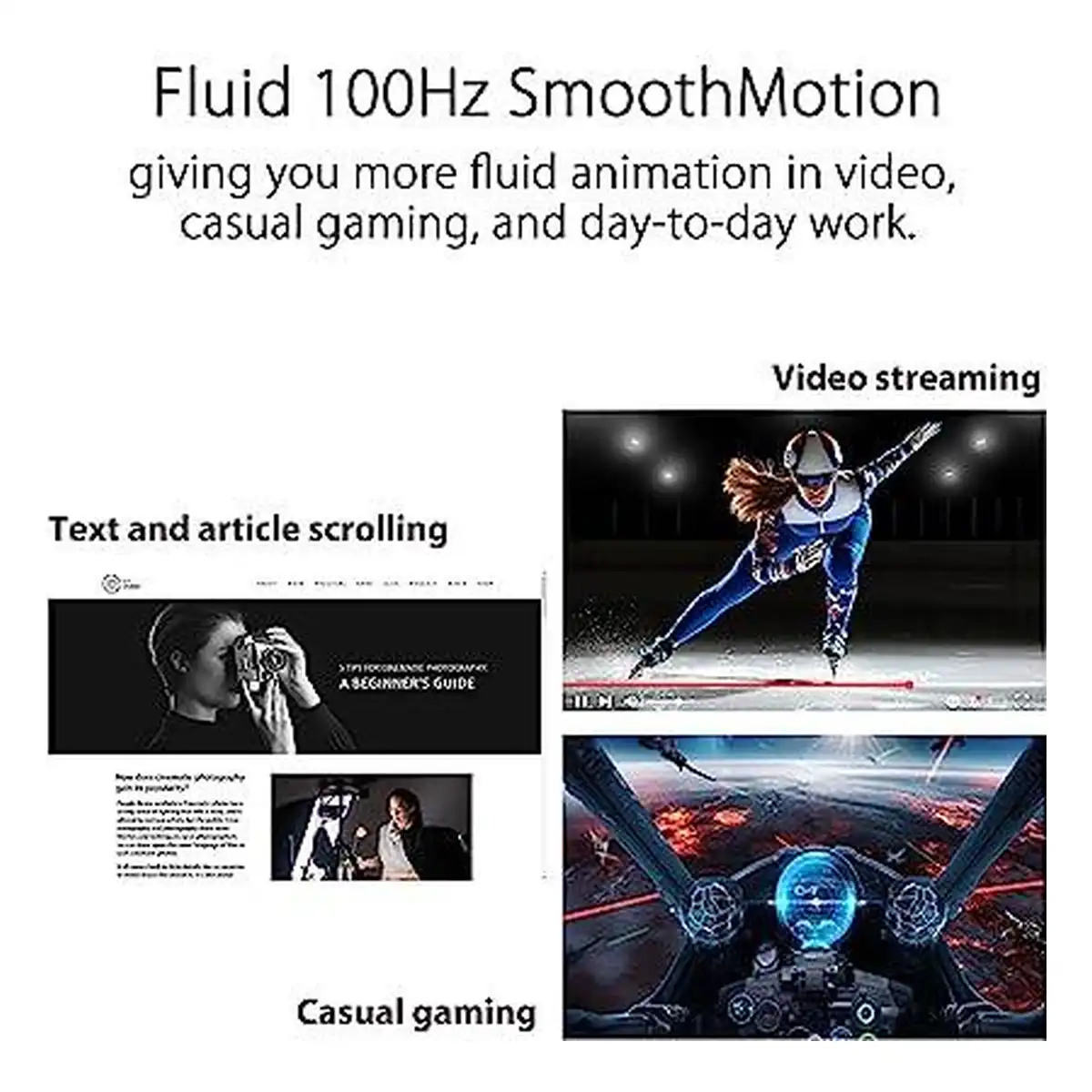 100Hz Refresh Rate : نرخ تازهسازی ارتقاء یافته نسبت به مانیتورهای معمولی 60Hz برای تجربه روانتر در اسکرول، رابط کاربری و طراحی.