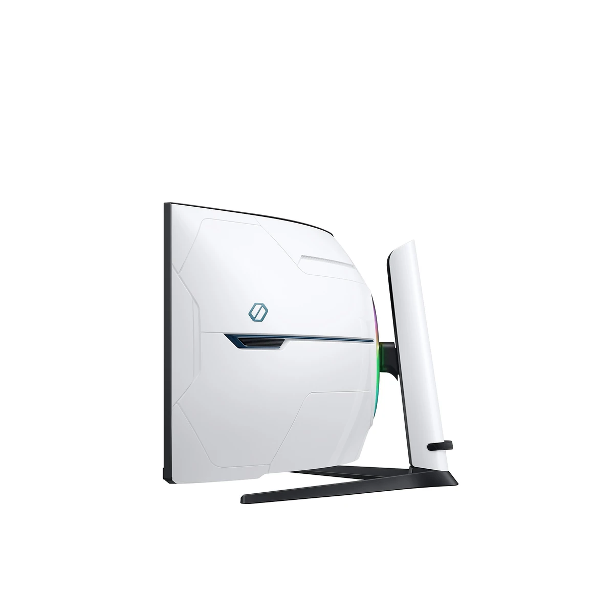 With 57-inch Dual 4K Curved VA Display (7680×2160) : اولین و بزرگترین پنل **57 اینچی VA** خمیده با انحنای **1000R** و وضوح **Dual UHD** (معادل دو مانیتور 4K کنار هم)، ارائه دهنده **غوطهوری مطلق** و فضای دید بینظیر برای بازی و کار حرفهای.